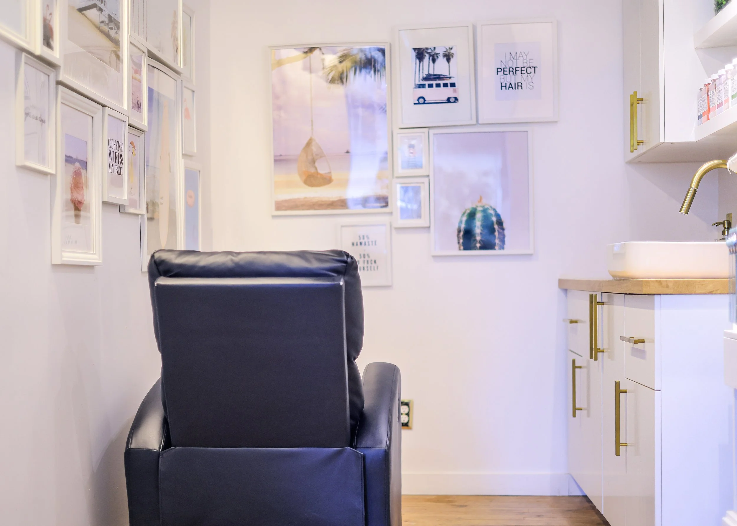 Our 1800 Square Foot Loft is spacious and open, with curated gallery walls, giving you lots to look at while you're getting your services done. A bumping playlist playing in the background. Our goal was to create a space where everyone feels welcome, knows they're in good hands, can afford the service they are getting and leaves feeling confident.